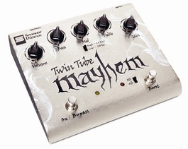 Známý pedál Seymour Duncan „Twin Tube Classic" SFX 03, který si na celém světě získává stále větší popularitu, nyní dostal od proslulého výrobce snímačů a efektových pedálů nového „high-gain" brášku – „Twin Tube Mayhem High Gain Distortion SFX-04". Uvedený dvoulampový model byl vyvinut s důrazem na co možná nejsilnější, zběsilý až drtivě zkreslený zvuk. Twin Tube Mayhem SFX-04 představuje jednokanálový kytarový předzesilovač vestavěný do podlahového pedálu, který obsahuje dvě subminiaturní lampy 6205. Použitý obvod byl důkladně prověřen v modelu SFX-03 Classic. Použité lampy se ukázaly jako velice odolné proti vlivům mechanických otřesů a horku. Pro maximální využitelnou dynamiku jsou lampy napájeny vysokým napětím. Dodatečný vysoký zisk a zkreslení tvoří speciální zesilovací polovodičový obvod, který je schopen pracovat s nezbytným vysokým napětím. Díky tomuto obvodu je pedál SFX-04 velice odolný proti mikrofoničnosti. Jako všechny ostatní efekty Seymour Duncan má i tento pedál true-bypass, který zaručí při vypnutí efektu přenos signálu bez změny. Toto high-gain distortion monstrum je navrženo především pro heavy metal, punk a hard-rock. Výbavu tvoří ovladače pro Volume a Gain a třípásmový EQ (basy, středy a výšky). Přepínač přenosové charakteristiky prostředního pásma EQ (High 1,4 kHz / Low 600 Hz) dále rozšiřuje možnosti nastavení zvuku. Spínač Boost pak umožní snadno změnit hlasitost pro sóla. Tento přepínač je možné nastavit pro zesílení 4 dB nebo 8 dB. Doporučená MC cena pedálu je 8 009,- Kč / 10 009,- Sk včetně DPH.