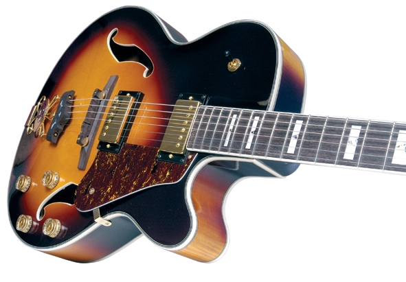 Naopak druhý snímač je zase od kobylky zbytečně daleko. Pokud kobylku přisunete blíž, rozhodíte si oktávy. Zvuk je ostrý, jenže mohl by být i ostřejší. To mi ale vůbec nevadilo. Koneckonců, většina jazzmanů kobylkový snímač využívá minimálně. Charakteristika obou snímačů je nastavena "do úsměvu". Jsou zvýrazněny basy a výšky. Díky tomu je každý tón velmi konkrétní a úder trsátkem je až skoro nepříjemně slyšet. Musel jsem přenastavit korekce na kombu, ale výsledný zvuk mě zcela uspokojil. Je měkčí a sušší než u pololubových kytar typu Sheraton, ale skutečně příjemný. Sustain je tak akorát. Dostatečně dlouhý, ale ne moc, aby nevznikaly zbytečné problémy se zpětnou vazbou, které jsou u těchto kytar stále aktuální. Snímače produkují silný signál, který skutečně nemá problém prosadit se v kapele. Potěšilo mě, že signál jednotlivých strun je velmi dobře vyrovnaný a není třeba upravovat nastavení šroubků na snímačích. U strun s neopředeným géčkem je G struna trochu hlasitější, ale opředená je akorát. A jaké struny patří na tuto kytaru je přece jasné.